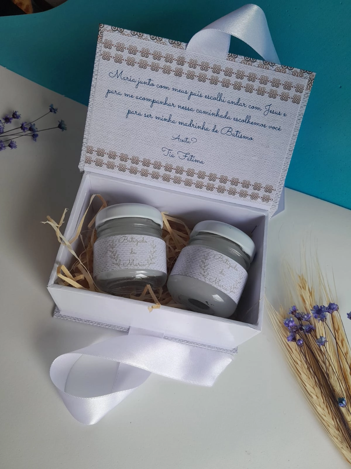 A mini caixa para convite padrinhos é ideal para presentear casais que moram na mesma casa. A caixinha pode ser personalizada com nome e cor da fita que você deseja. Também pode ser personalizada a mensagem de dentro da caixinha.